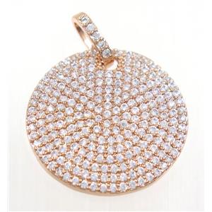 copper circle pendant paved zircon, rose gold, approx 25mm dia