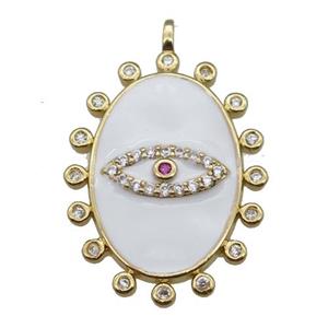 • copper oval Eye pendant pave zircon with white enamel, gold plated, approx 17.5-25mm