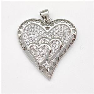 • Copper Heart Pendant Micro Pave Zirconia Platinum Plated Mixed, approx 20-26mm