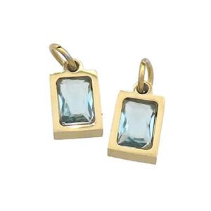 • Stainless Steel Pendant Pave Aqua Zircon Rectangle Gold Plated, approx 4x6mm