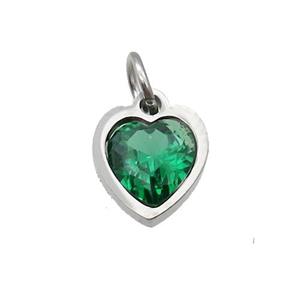 Raw Stainless Steel Heart Pendant Pave Green Zircon, approx 6x6mm