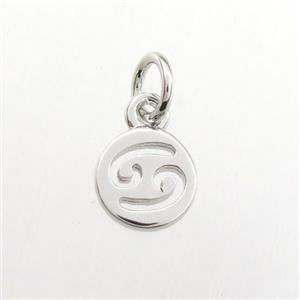 • copper circle pendant, zodiac cancer, platinum plated, approx 7mm dia