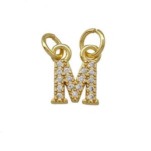 • Copper Letter-M Pendant Pave Zirconia Gold Plated, approx 5-8mm