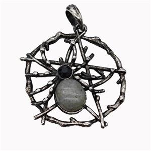 • Alloy Spider Pendant Pave Labradorite Antique Silver, approx 35-40mm