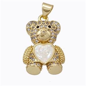 Copper Bear Pendant Micropave Zirconia White Fire Opal Heart 18K Gold Plated, approx 15-20mm