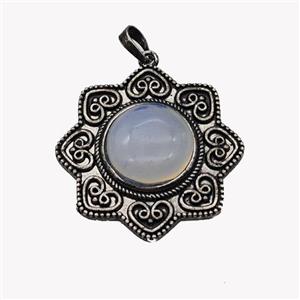 • Alloy Flower Pendant Pave Opalite Antique Silver, approx 18mm, 40mm