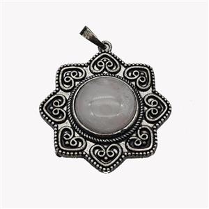 • Alloy Flower Pendant Pave Rose Quartz Antique Silver, approx 18mm, 40mm