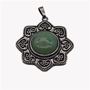 • Alloy Flower Pendant Pave Green Aventurine Antique Silver, approx 18mm, 40mm