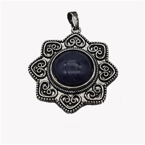 • Alloy Flower Pendant Pave Blue Lapis Antique Silver, approx 18mm, 40mm