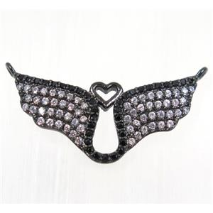 • copper bat pendant paved zircon with 2loops, black plated, approx 12x25mm