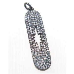 • copper rectangle pendant paved zircon, black plated, approx 18x27mm