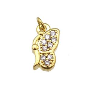 copper butterfly pendant paved zircon, gold plated, approx 9-12mm
