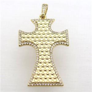 copper cross pendant paved zircon, gold plated, approx 35-47mm