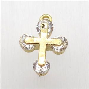 copper cross pendant paved zircon, gold plated, approx 8-12mm