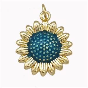 • Copper Sunflower Pendant Teal Painted Gold Plated, approx 18mm