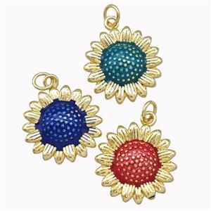 • Copper Sunflower Pendant Painted Gold Plated Mixed, approx 18mm