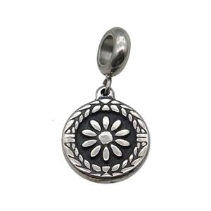 • Stainless Steel Flower Pendant Antique Silver, approx 15mm, 10mm, 6mm hole