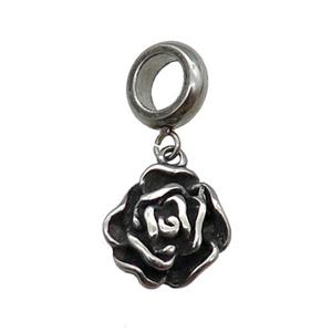 • Stainless Steel Rose Flower Pendant Antique Silver, approx 12mm, 9mm, 5mm hole