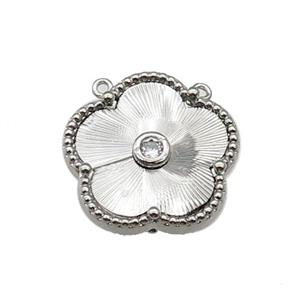 copper flower pendant paved zircon, platinum plated, approx 7-9mm
