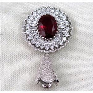 paved zircon copper pendant, platinum plated, approx 25x30mm