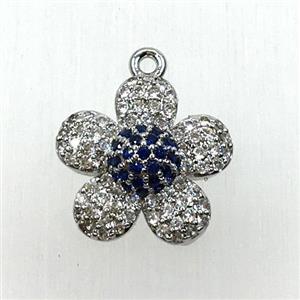 copper flower pendant paved zircon, platinum plated, approx 30x35mm