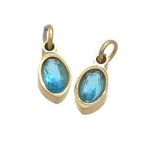 • Stainless Steel Eye Pendant Pave Aqua Zircon Gold Plated, approx 4x6mm