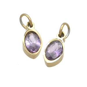 • Stainless Steel Eye Pendant Pave Purple Zircon Gold Plated, approx 4x6mm
