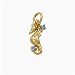 Copper Scallop Shell Pendant Pave Zirconia Blue Enamel Gold Plated, approx 20-25mm