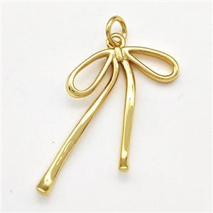 copper Bowknot pendant paved zircon, gold plated, approx 13-17mm