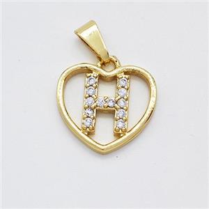 • Copper Heart Pendant Pave Zirconia Letter-H Gold Plated, approx 16mm