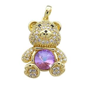 Copper Bear Pendant Pave Zircon Crystal Glass Gold Plated, approx 18-24mm
