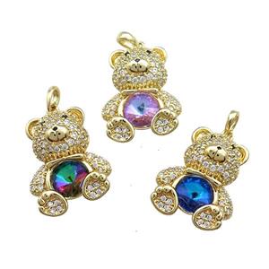 Copper Bear Pendant Pave Zircon Crystal Glass Gold Plated Mixed, approx 18-24mm