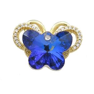 Crystal Glass Butterfly Pendant Copper Pave Zircon Gold Plated, approx 18-25mm