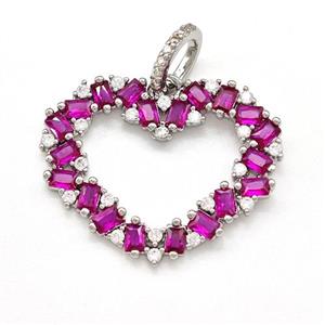 Copper Heart Pendant Micro Pave Fuchsia Zirconia Platinum Plated, approx 20-26mm