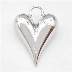 Copper Heart Pendant Micro Pave Zirconia Platinum Plated, approx 20-26mm