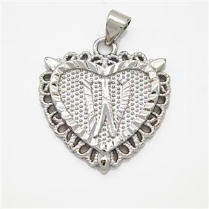 Copper Heart Alphabet Pendant Letter Platinum Plated Mixed, approx 22mm