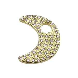 • copper crescent moon pendant pave zircon, gol dplated, approx 16-20mm