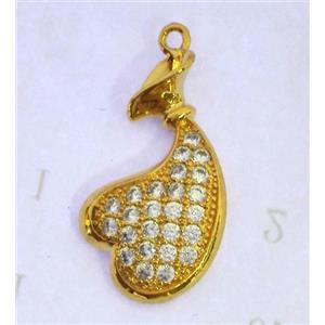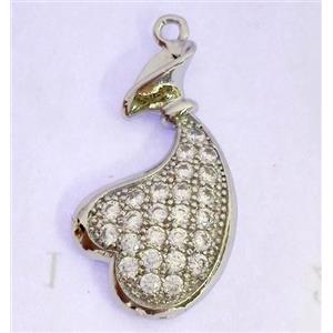 paved zircon copper pendant, platinum plated, approx 20-25mm