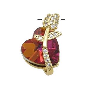 Copper Tulip Flower Pendant Pave Crystal Glass Zircon Gold Plated, approx 14-20mm