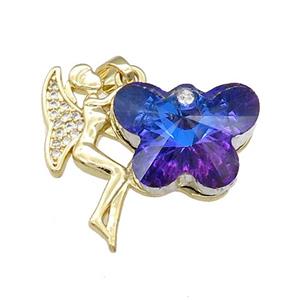 • Crystal Glass Butterfly Pendant Copper Pave Zircon Gold Plated, approx 18-25mm
