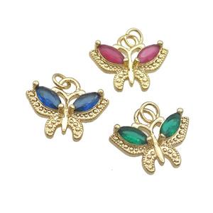 • Copper Butterfly Pendant Pave Crystal Gold Plated Mixed, approx 7mm
