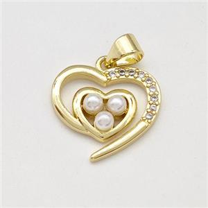Copper Heart Pendant Micro Pave Pearlized Resin Gold Plated, approx 9mm