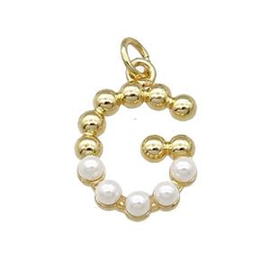 Copper Letter-O Pendant Pave Pearlized Glass Gold Plated, approx 15mm