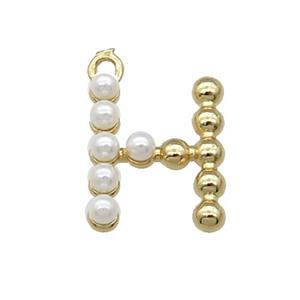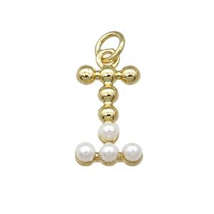 Copper Letter-T Pendant Pave Pearlized Glass Gold Plated, approx 15mm