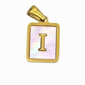 • Stainless Steel Rectangle Pendant Pave Pink Shell Letter-I Gold Plated, approx 12-15mm