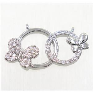 copper butterfly pendant paved zircon with 2loops, platinum plated, approx 19-28mm