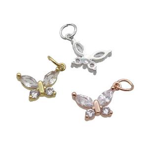 Copper Butterfly Pendant Pave Zircon Platinum Plated, approx 10-13mm