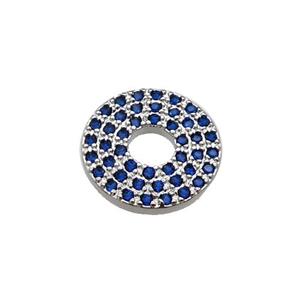 copper circle pendant pave blue zircon, platinum plated, approx 13mm dia