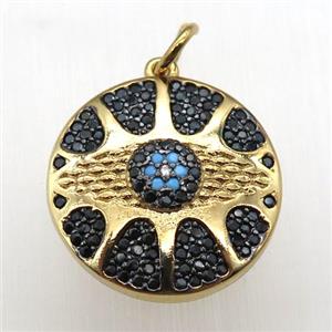 copper circle pendant paved zircon, eye, gold plated, approx 18mm dia