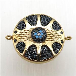 copper circle connector paved zircon, eye, gold plated, approx 18mm dia